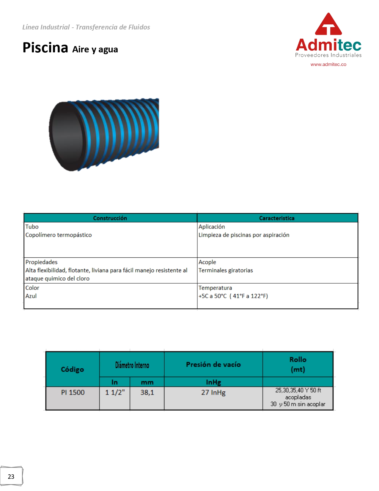 Aire y Agua Limpieza de piscinas por aspiración SKU: LII-023 Categories: Mangueras AIRE / AGUA, Soluciones Industriales Description Description Ver más en ficha técnica: