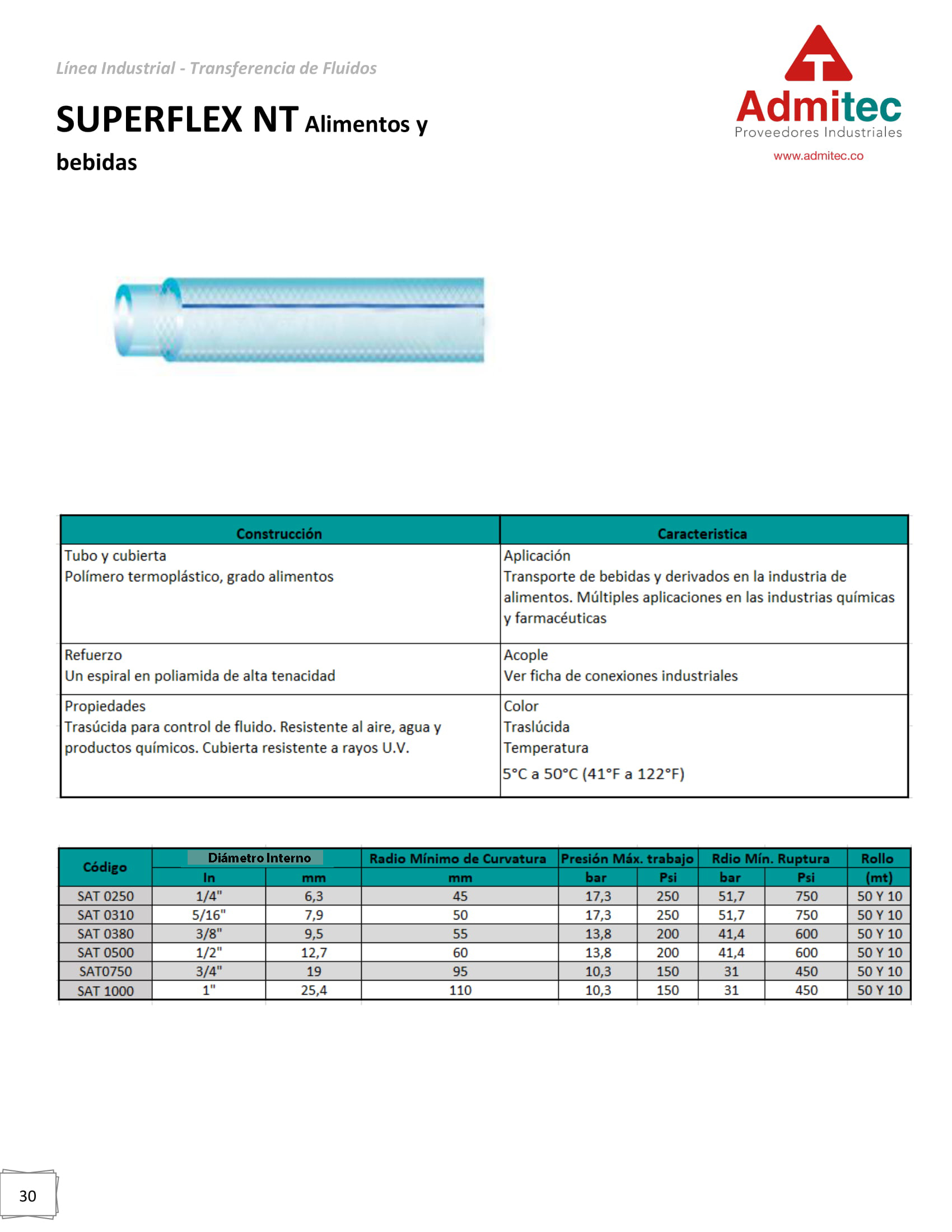 Transporte de bebidas y derivados en la industria de alimentos. Múltiples aplicaciones en las industrias químicas y farmacéuticas SKU: LII-030 Categories: Mangueras ALIMENTOS Y BEBIDAS, Soluciones Industriales Description Description Ver más en ficha técnica: