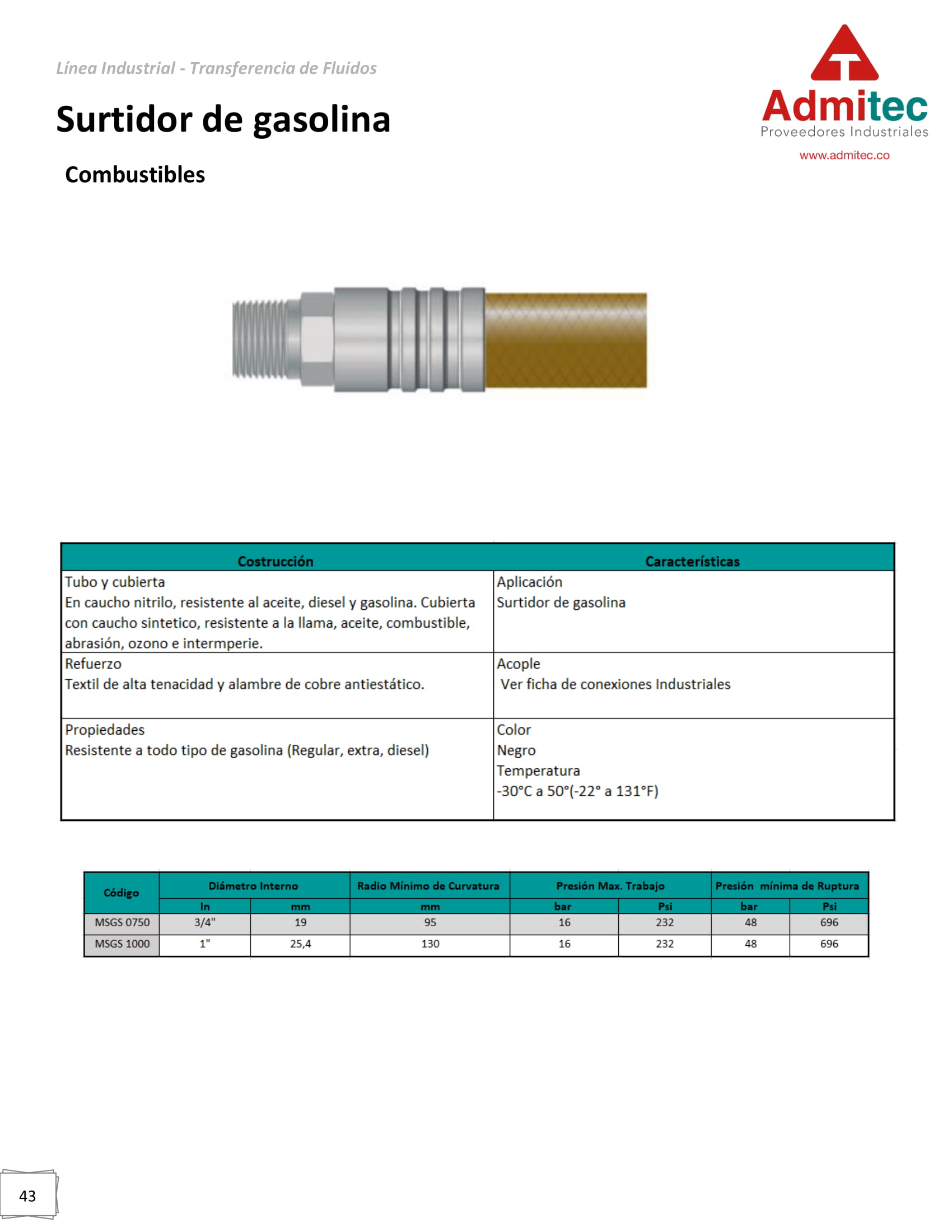 Combustibles SKU: LII-043 Categories: Mangueras COMBUSTIBLE, Soluciones Industriales Description Description Ver más en ficha técnica: