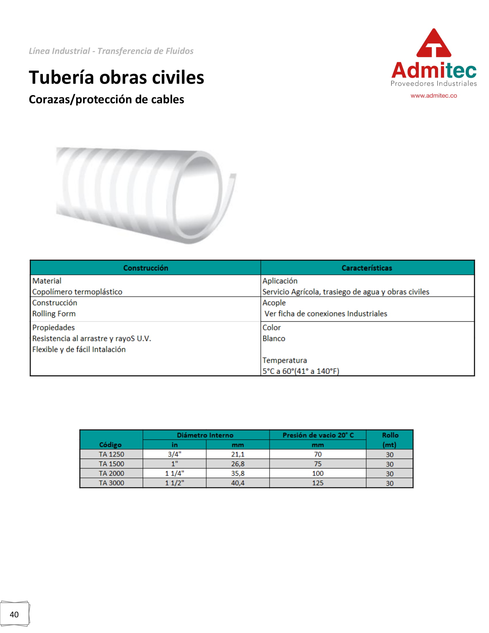Protección de cables Servicio Agrícola, trasiego de agua y obras civiles SKU: LII-040 Categories: Mangueras CORAZAS / PROTECCIÓN DE CABLES, Soluciones Industriales Description Description Ver más en ficha técnica: